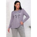 Модель свободного силуэта длиной до линии бёдер, рукав втачной длинный. На переднюю часть нанесён оригинальный и стильный принт, комбинированный с вертикальной россыпью из страз. Туника изготавливается в трёх расцветках, прекрасно сочетается с любой одеждой.