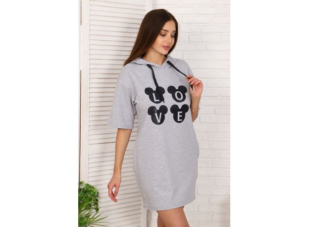 Туника с молодёжным принтом из тонкого, приятного к телу футера 2-х нитки с лайкрой. Модель с капюшоном, спущенная пройма, короткий свободный рукав, в боковых швах удобные карманы. Принт на передней полочке гармонично сочетается с декоративным шнуром в капюшоне. Туника - это универсальная вещь, которая должна быть в гардеробе каждой женщины, независимо от возраста и фигуры.