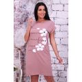 Туника женская с нежным 3Д принтом из однотонной кулирки, модель слегка приталенного силуэта, округлая горловина обработана бейкой, спущенная пройма на манжете с отворотом.
