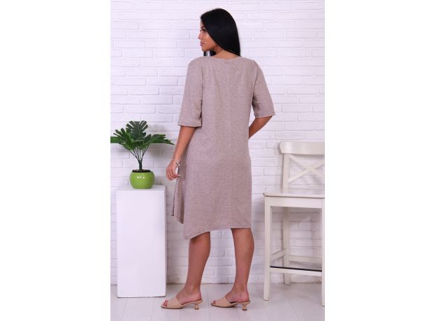 Туника из кулирки свободного силуэта, расклешенная к низу, с боковыми внутренними карманами. Низ изделия имеет фигурную форму. Рукав длиной до локтя. Перед туники с принтом.