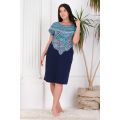 Изделие выполнено из трикотажной хлопчатобумажной ткани. Туника с удобным спущенным рукавом, который подчеркивает линию плеч, имеет прямой силуэт. Полочку украшает яркая печать, переходящая на рукав. У туники имеются боковые карманы, выполненные в швах.