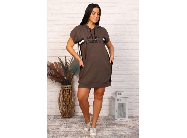 Туника женская из меланжевой ткани в спортивном стиле с капюшоном. Объем капюшона регулируется шнурком, в боковых швах спрятаны карманы, снизу - широкая манжета. Рукав - спущенный реглан. На полочке оригинальный принт в виде готической надписи, боковины отделаны лампасами контрастных цветов, что придает изделию неповторимый стиль. Туника легко сочетается практически со всем, что имеется в гардеробе, поэтому будет вполне уместна как на прогулке, так и на спортивных занятиях. Туника - отличный вариант для тех, кто ценит не только стиль, но и оригинальность и комфорт.