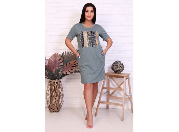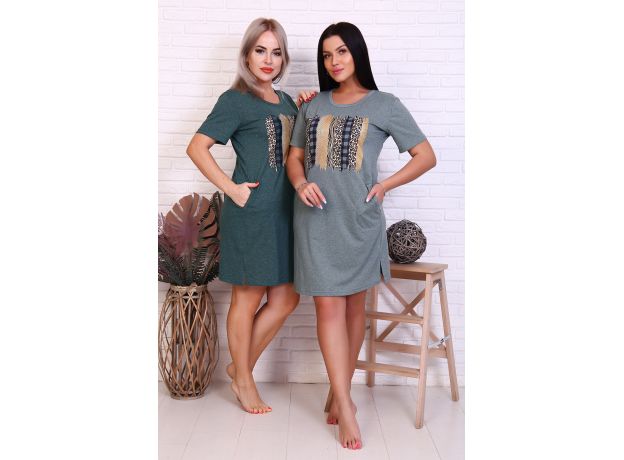Туника из легкой хлопчато-бумажной ткани с короткими рукавами и карманами, скрытыми в боковых швах. Представлена в двух, достаточно сдержанных цветах - зеленый и ментол. Особой изюминкой туники является яркий оригинальный принт на полочке, который безусловно привлечет внимание и позволит хозяйке выглядеть нарядно дома, в гостях и на улице.
