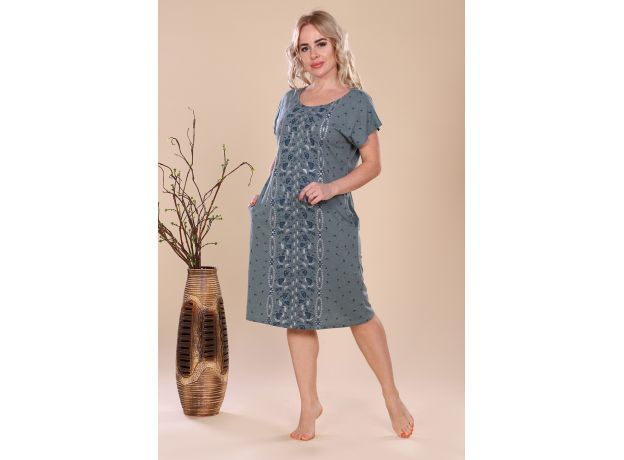 Удобная, легкая туника свободного покроя из хлопковой ткани. Представлена в 3-х расцветках - благородный синий, нежный ментол и сдержанный антрацит. Изящный принт из мелких цветов, группирующихся к центру в ажурный узор, визуально корректирует фигуру, позволяя обладательнице выглядеть нарядной, стройной и немного загадочной.