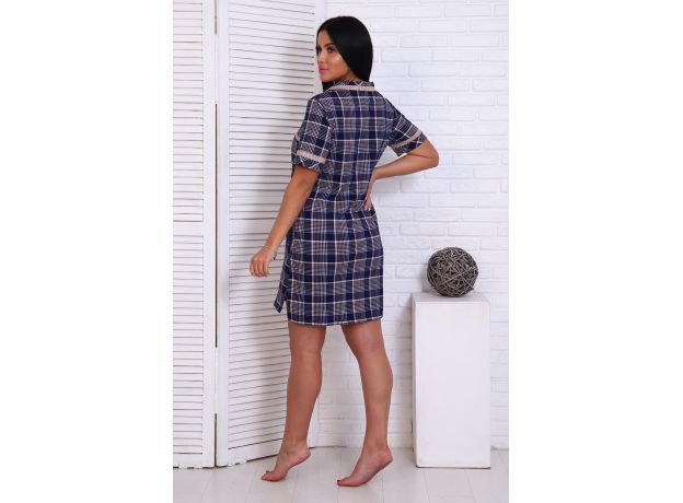 Туника на молнии для дома, дачи и отдыха, полуприлегающего силуэта с рукавом по локоть. На воротнике, кокетке и рукаве находится отделочный элемент из ткани-компаньона. Карманы расположены в боковых швах. Туника с небольшими разрезами по бокам и слегка удлиненной спинкой.