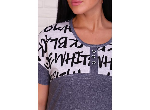 Удлиненная туника полуприлегающего силуэта с высокими разрезами по бокам. На полочке и спинке кокетки из ткани-компаньона. На передней полочке находится планка с декоративными пуговицами.