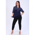 Туника прямого покроя подобрана на паты, рукав 3/4 на манжете. Передняя полочка на кокетке, комбинированная в двух цветах, спинка цветная. Удобна, практична.