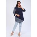 Туника прямого покроя. Округлая горловина отделана кантиком, рукав 3/4 на манжете, передняя полочка удлиненная.