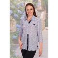 Туника классического полуприлегающего кроя. 3/4 рукав с декоративной отделкой на пуговице, воротник на стойке, по бокам разрезы украшены декоративной отделкой с пуговицей, на груди клапаны и планка с отделкой на пуговицах. Отличное сочетание двух фактур.