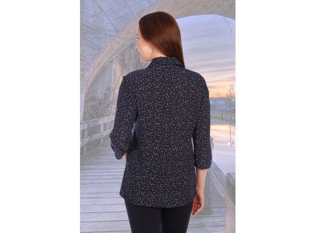 Туника классического полуприлегающего кроя. 3/4 рукав с декоративной отделкой на пуговице, воротник на стойке, по бокам разрезы украшены декоративной отделкой с пуговицей, на груди клапаны и планка с отделкой на пуговицах. Отличное сочетание двух фактур.