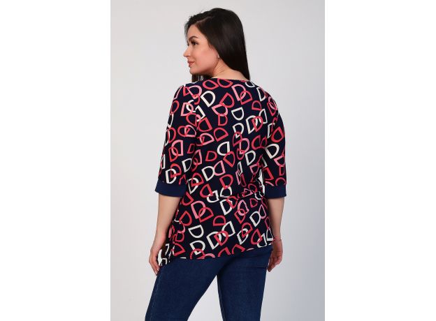 Оригинальная туника 2 в 1, с однотонной вставкой. Полукруглый вырез, рукав 3/4 на манжете, спереди украшение в виде цепи.