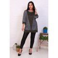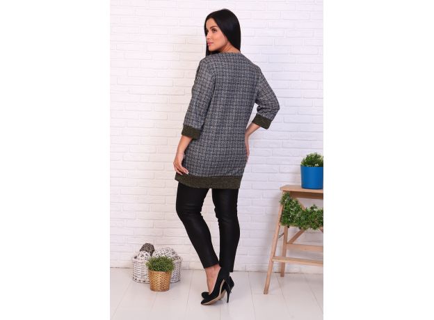 Женская комбинированная туника. Округлая горловина, рукав 3/4 на манжете. По низу изделия вшита планка.
