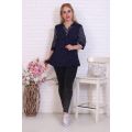 Дерзкое сочетание гороха и полоски не оставит равношушным не одну женщину. Основа туники - классический горох, отделана V-образной горловиной из полосатой ткани и рукавами подобранными на паты. Воротник-стойка.