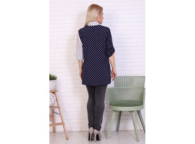 Женская туника рубашечного кроя из легкой ткани. Сочетание двух цветов гороха придает ей загадочность и элегантность.