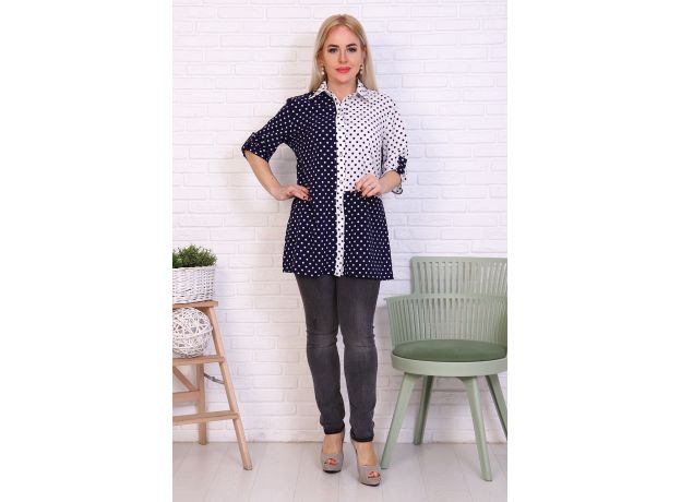 Женская туника рубашечного кроя из легкой ткани. Сочетание двух цветов гороха придает ей загадочность и элегантность.