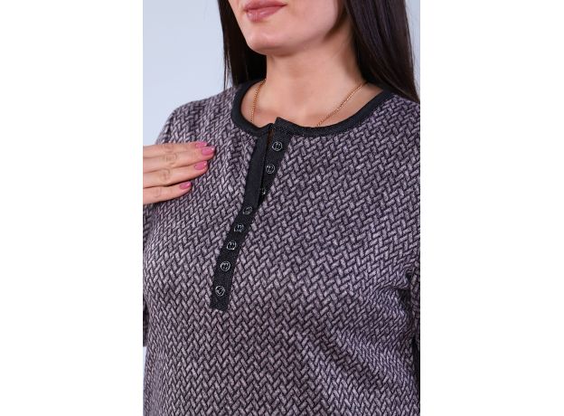 Ангора давно завоевал сердца модниц, выступающих за комфорт. Этот универсальный материал сохраняет форму и легко гладится, на ощупь приятен, прекрасно сохраняет тепло и пропускает воздух. Изделия из ангоры можно надеть куда угодно: от спортивной прогулки до похода в театр. Она везде будет смотреться стильно и уместно. Укороченная туника с имитацией планки на полочке украшенная пуговицами. Низ изделия подобран на паты.