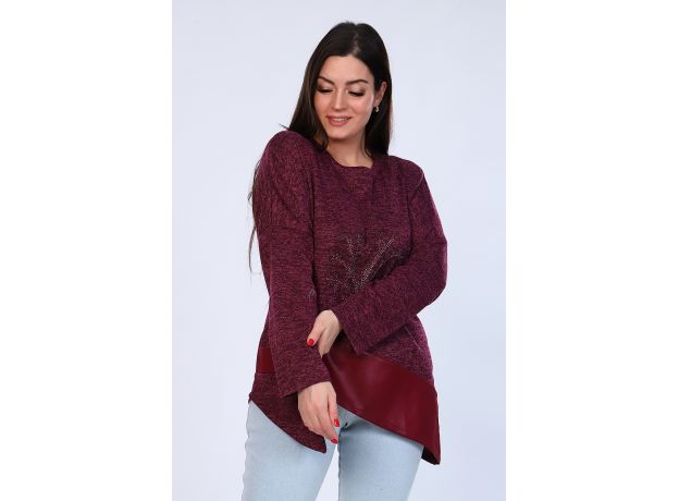 Туника  это универсальный вид одежды, представляющий собой удлиненный вид рубашки, футболки, лонгслива или укороченное платье, носимое как самостоятельный предмет гардероба или с юбкой, брюками. При этом туника не заправляется под юбку или брюки, а носится поверх них. Туника из ангоры согреет вас в любую погоду, оригинальный низ изделия и орнамент из страз, придают оригинальность тунике. Рост модели на фото 165см, размер 48
