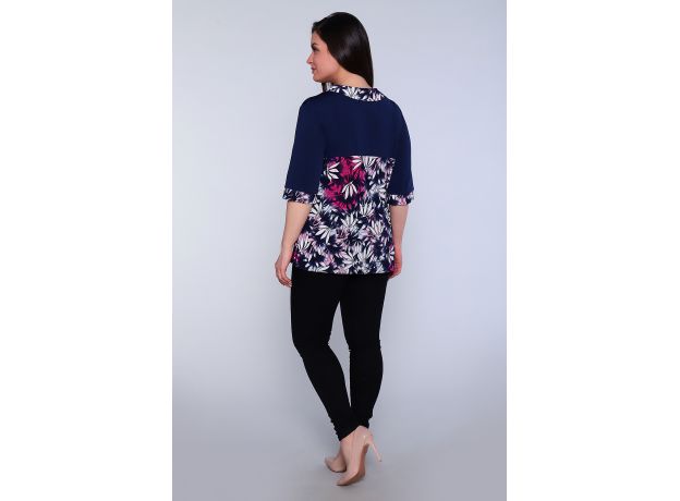 Туника прямого покроя подобрана на паты, рукав 3/4 на манжете. Передняя полочка на кокетке, комбинированная в двух цветах, спинка цветная. Удобна, практична.
