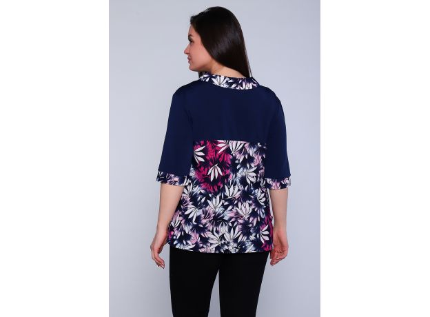 Туника прямого покроя подобрана на паты, рукав 3/4 на манжете. Передняя полочка на кокетке, комбинированная в двух цветах, спинка цветная. Удобна, практична.