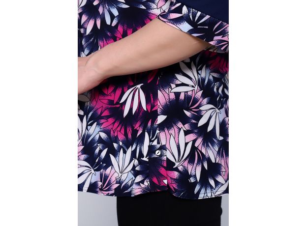 Туника прямого покроя подобрана на паты, рукав 3/4 на манжете. Передняя полочка на кокетке, комбинированная в двух цветах, спинка цветная. Удобна, практична.
