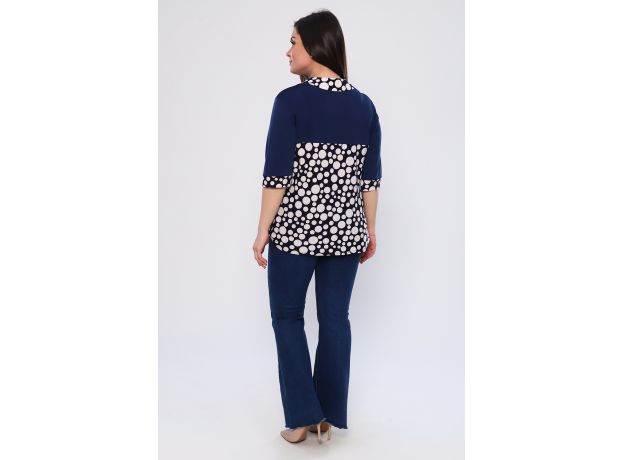 Туника прямого покроя подобрана на паты, рукав 3/4 на манжете. Передняя полочка на кокетке, комбинированная в двух цветах, спинка цветная. Удобна, практична.