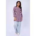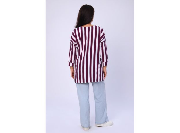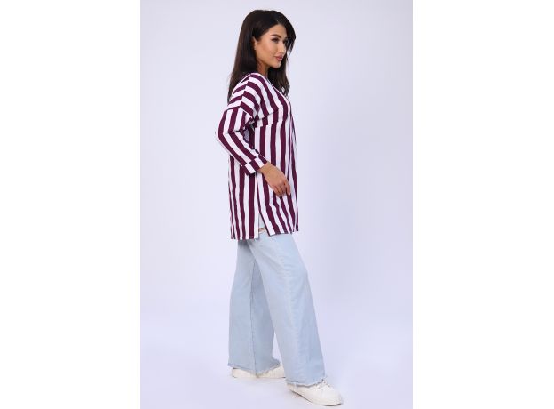 Представляем вашему вниманию женскую тунику белого цвета с сиреневой полоской. Она станет отличным выбором для повседневного и спортивного стиля. Прямой покрой туники позволяет свободно двигаться в ней, а летучая мышь - рукава придают модели неповторимую легкость и изящество.