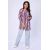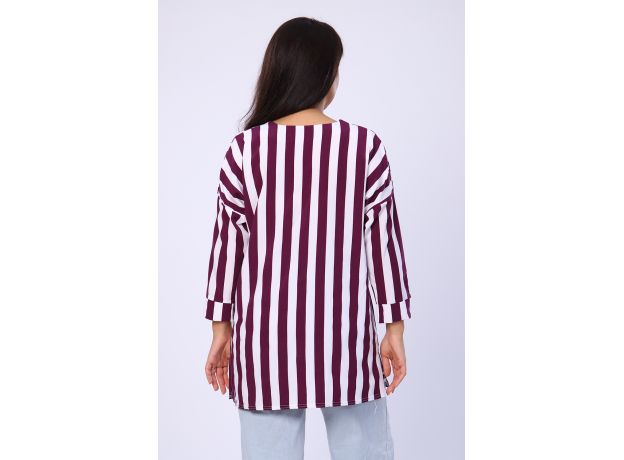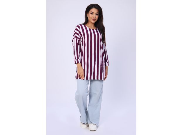 Представляем вашему вниманию женскую тунику белого цвета с сиреневой полоской. Она станет отличным выбором для повседневного и спортивного стиля. Прямой покрой туники позволяет свободно двигаться в ней, а летучая мышь - рукава придают модели неповторимую легкость и изящество.