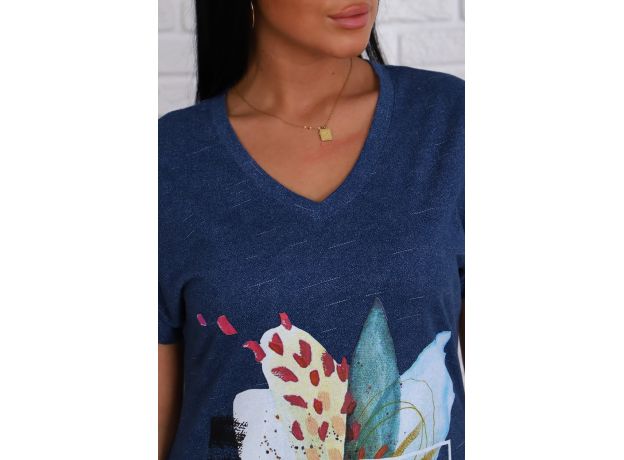 Женская туника выполнена из высококачественного полотна с красивым принтом на груди. Текстура ткани приятно прилегает к телу и позволяет коже дышать.