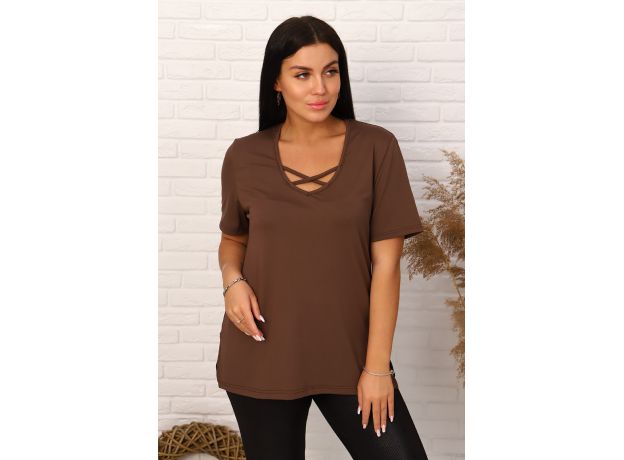 Туника женская из эластичного трикотажного полотна - вискозы. Туника полуприлегающего силуэта с коротким рукавом, по боковым швам разрезы. Изюминка - фигурный вырез горловины.