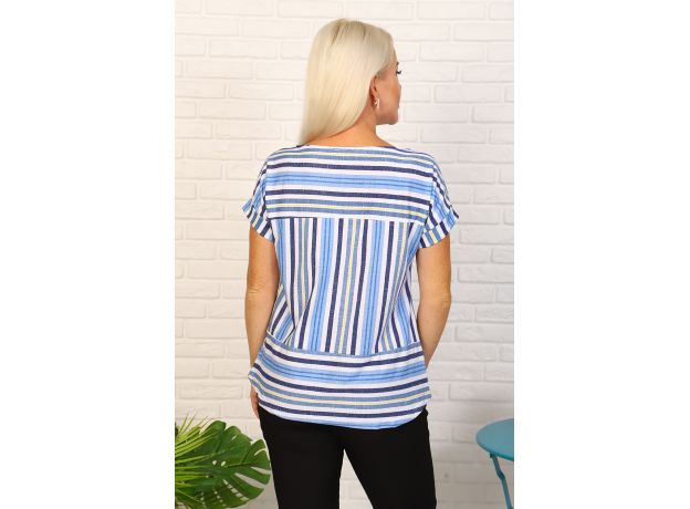 Туника женская прямого силуэта, спущенная линия плеча с манжетой, горловина лодочкой. Особенности туники - скомбинированная полоска, как горизонтальная, так и вертикальная. Универсальный вариант для носки с любым низом.