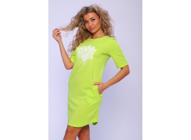Туника с коротким рукавом.Низ фигурный.Карманы в боковых швах.