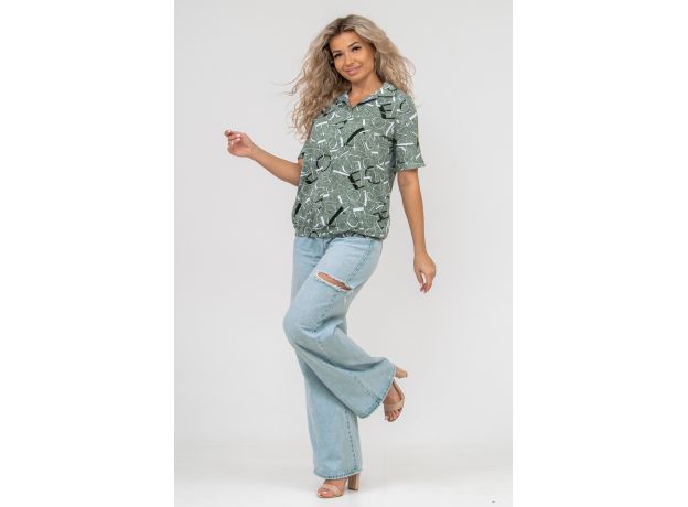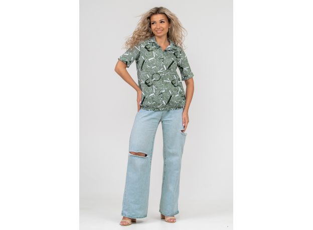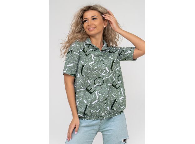 Женская туника-рубашка выполнена из 100% хлопчатобумажного полотна. Рубашечный воротник, планка, укороченные рукава с манжетами и резинка по низу - всё это вместе создаёт интересную модель