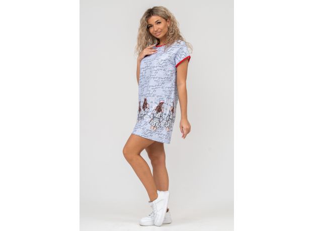 Женская туника прямого силуэта со спущенным плечом выполнена из 100% хлопчатобумажной ткани. Горловина и рукава обработаны ярким красным кантом, а крупный купонный рисунок по краю ткани придаёт изделию по-своему оригинальный вид. Данная модель идеально подойдёт для дома и отдыха.