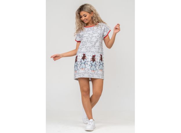 Женская туника прямого силуэта со спущенным плечом выполнена из 100% хлопчатобумажной ткани. Горловина и рукава обработаны ярким красным кантом, а крупный купонный рисунок по краю ткани придаёт изделию по-своему оригинальный вид. Данная модель идеально подойдёт для дома и отдыха.