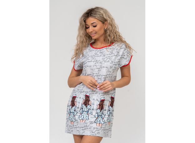 Женская туника прямого силуэта со спущенным плечом выполнена из 100% хлопчатобумажной ткани. Горловина и рукава обработаны ярким красным кантом, а крупный купонный рисунок по краю ткани придаёт изделию по-своему оригинальный вид. Данная модель идеально подойдёт для дома и отдыха.