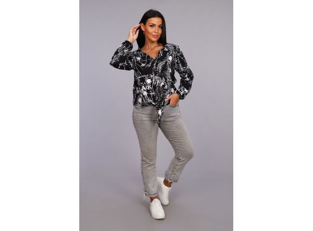 Женская стильная туника блузочного плана выполнена из 100% хлопчатобумажного полотна в двух классических расцветках с нежным рисунком. Красивый V - образный вырез обработанный силиконовой лентой не даёт горловине вытянуться и деформироваться даже после стирки. Так же изделие дополняет длинный рукав с оригинальной бантовой складкой по окату и сборкой на резинку по низу. Блузка выполнена на расстёгивающихся кнопках, что делает её более комфортной и привлекательной. Удлинённые края полочки создают оригинальный узел. В данной тунике собраны все её неоспоримые достоинства - удобство, красота и многовариантность.
