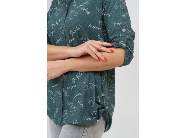 Женская стильная туника-рубашка выполнена из 100% хлопчатобумажного полотна.