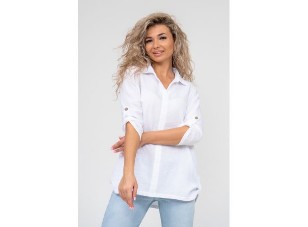 Женская туника - рубашка в стиле oversize выполнена из воздушного и опрятного к телу 2-х слойного жатого муслина. Материал идеально дышит, практически не ощущается на теле и быстро сохнет при намокании. Тунику дополняет стильный рубашечный воротник, рукав 3/4, паты с расстёгивающимися пуговицами, с помощью которых Вы можете носить модель в разных вариациях. Новая стилевая интерпретация сделала рубашку одной из базовых вещей, которая с разной одеждой смотрится неодинаково и всегда интересно и свежо. Хлопковая рубашка подойдёт взрослым и подросткам. Великолепно будет смотреться дома, на прогулке, на празднике, в школе и на пляже. Модель такого плана идеально подойдёт и в качестве подарка для себя и своих любимых! Стирать муслиновые вещи нужно только в теплой воде при температуре не выше 40С.