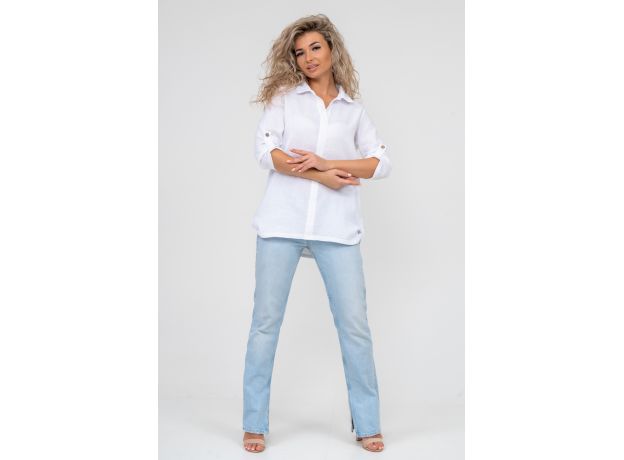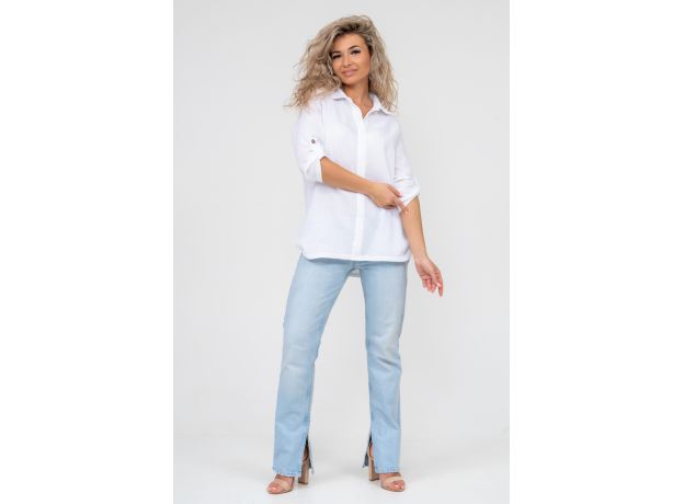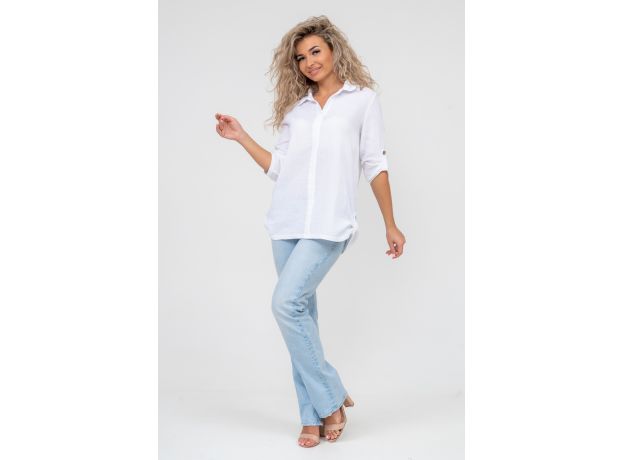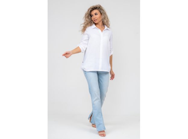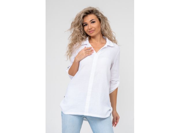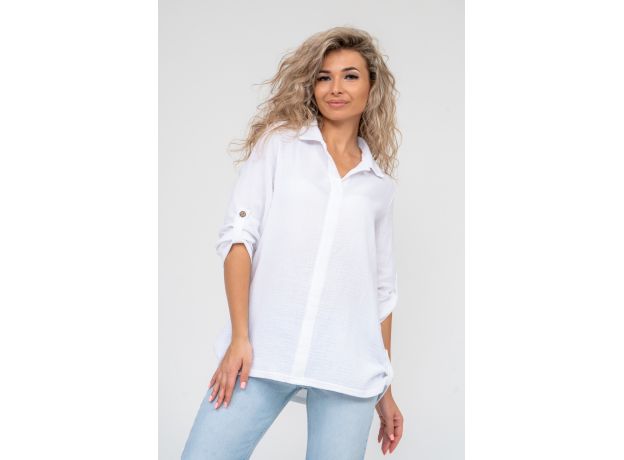 Женская туника - рубашка в стиле oversize выполнена из воздушного и опрятного к телу 2-х слойного жатого муслина. Материал идеально дышит, практически не ощущается на теле и быстро сохнет при намокании. Тунику дополняет стильный рубашечный воротник, рукав 3/4, паты с расстёгивающимися пуговицами, с помощью которых Вы можете носить модель в разных вариациях. Новая стилевая интерпретация сделала рубашку одной из базовых вещей, которая с разной одеждой смотрится неодинаково и всегда интересно и свежо. Хлопковая рубашка подойдёт взрослым  и подросткам. Великолепно будет смотреться дома, на прогулке, на празднике, в школе и на пляже. Модель такого плана идеально подойдёт и в качестве подарка для себя и своих любимых! Стирать муслиновые вещи нужно только в теплой воде при температуре не выше 40С.