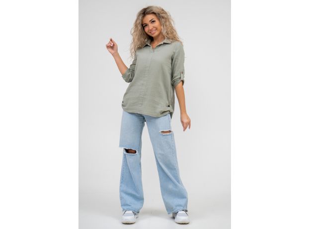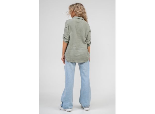 Женская туника - рубашка в стиле oversize выполнена из воздушного и опрятного к телу 2-х слойного жатого муслина. Материал идеально дышит, практически не ощущается на теле и быстро сохнет при намокании. Тунику дополняет стильный рубашечный воротник, рукав 3/4, паты с расстёгивающимися пуговицами, с помощью которых Вы можете носить модель в разных вариациях. Новая стилевая интерпретация сделала рубашку одной из базовых вещей, которая с разной одеждой смотрится неодинаково и всегда интересно и свежо. Хлопковая рубашка подойдёт взрослым  и подросткам. Великолепно будет смотреться дома, на прогулке, на празднике, в школе и на пляже. Модель такого плана идеально подойдёт и в качестве подарка для себя и своих любимых! Стирать муслиновые вещи нужно только в теплой воде при температуре не выше 40С.