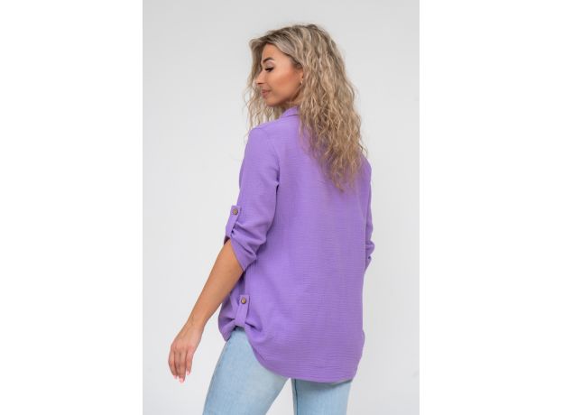 Женская туника - рубашка в стиле oversize выполнена из воздушного и опрятного к телу 2-х слойного жатого муслина. Материал идеально дышит, практически не ощущается на теле и быстро сохнет при намокании. Тунику дополняет стильный рубашечный воротник, рукав 3/4, паты с расстёгивающимися пуговицами, с помощью которых Вы можете носить модель в разных вариациях. Новая стилевая интерпретация сделала рубашку одной из базовых вещей, которая с разной одеждой смотрится неодинаково и всегда интересно и свежо. Хлопковая рубашка подойдёт взрослым  и подросткам. Великолепно будет смотреться дома, на прогулке, на празднике, в школе и на пляже. Модель такого плана идеально подойдёт и в качестве подарка для себя и своих любимых! Стирать муслиновые вещи нужно только в теплой воде при температуре не выше 40С.