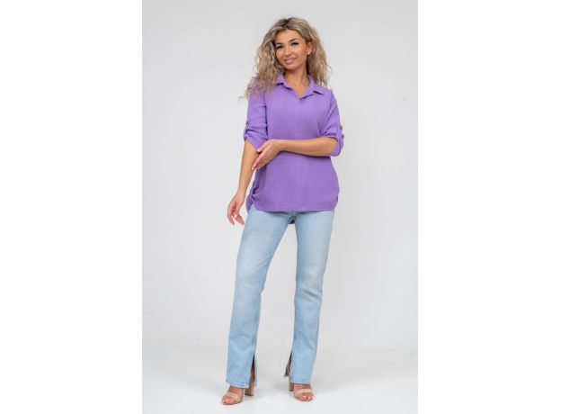 Женская туника - рубашка в стиле oversize выполнена из воздушного и опрятного к телу 2-х слойного жатого муслина. Материал идеально дышит, практически не ощущается на теле и быстро сохнет при намокании. Тунику дополняет стильный рубашечный воротник, рукав 3/4, паты с расстёгивающимися пуговицами, с помощью которых Вы можете носить модель в разных вариациях. Новая стилевая интерпретация сделала рубашку одной из базовых вещей, которая с разной одеждой смотрится неодинаково и всегда интересно и свежо. Хлопковая рубашка подойдёт взрослым  и подросткам. Великолепно будет смотреться дома, на прогулке, на празднике, в школе и на пляже. Модель такого плана идеально подойдёт и в качестве подарка для себя и своих любимых! Стирать муслиновые вещи нужно только в теплой воде при температуре не выше 40С.