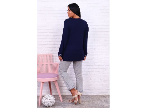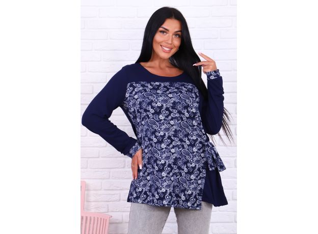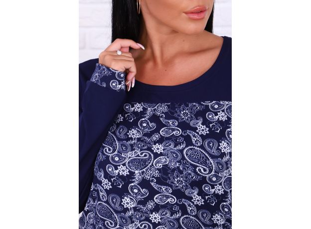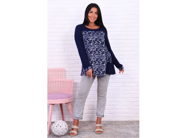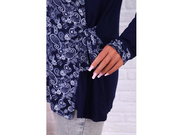 Туника женская из нежного масла и вискозы комбинированная, округлая горловина, пояс-завязки, длинный рукав с манжетом