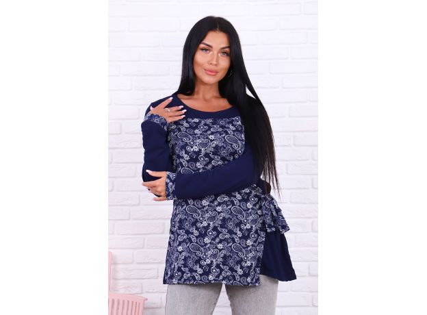 Туника женская из нежного масла и вискозы комбинированная, округлая горловина, пояс-завязки, длинный рукав с манжетом