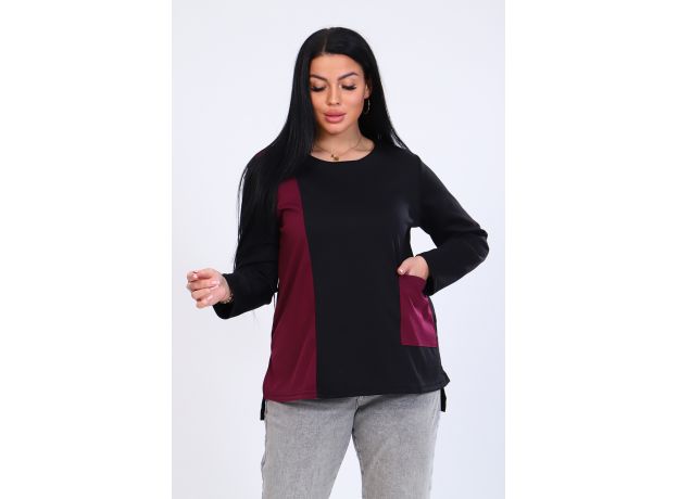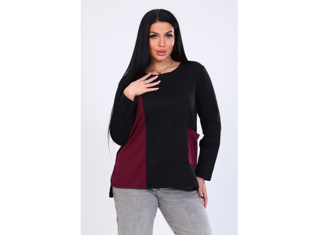 Красивая, двухцветная женская туника, выполнена из плотного материала - Милано, отлично подойдет для осени. Форма модели - трапеция, округлая горловина, длинный рукав, по бокам небольшие разрезы. Декоративный элемент - накладной карман.
