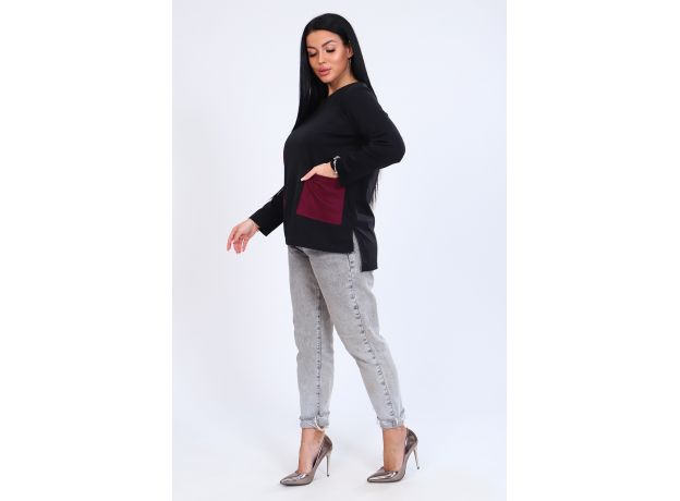 Красивая, двухцветная женская туника, выполнена из плотного материала - Милано, отлично подойдет для осени. Форма модели - трапеция, округлая горловина, длинный рукав, по бокам небольшие разрезы. Декоративный элемент - накладной карман.