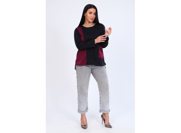 Красивая, двухцветная женская туника, выполнена из плотного материала - Милано, отлично подойдет для осени. Форма модели - трапеция, округлая горловина, длинный рукав, по бокам небольшие разрезы.