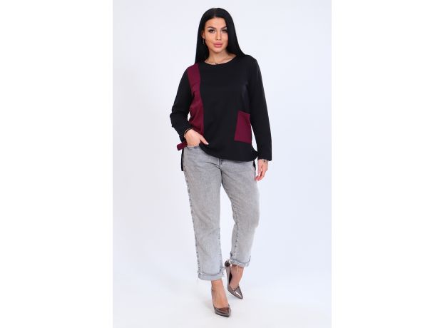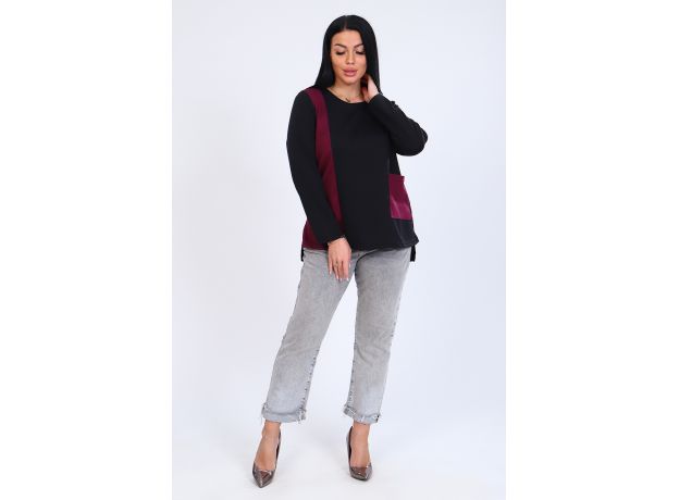 Красивая, двухцветная женская туника, выполнена из плотного материала - Милано, отлично подойдет для осени. Форма модели - трапеция, округлая горловина, длинный рукав, по бокам небольшие разрезы. Декоративный элемент - накладной карман.