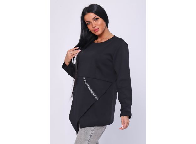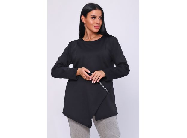 Элегантная женская туника, выполнена из плотной ткани. Свободный силуэт, средней длины, округлая горловина, длинный рукав. Подойдет для повседневного образа и для особого случая