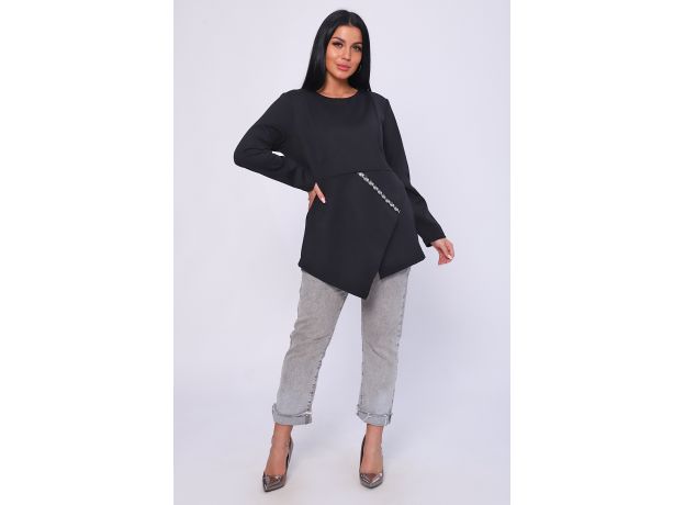 Элегантная женская туника, выполнена из плотной ткани. Свободный силуэт,  средней длины, округлая горловина, длинный рукав. Подойдет для повседневного образа и для особого случая